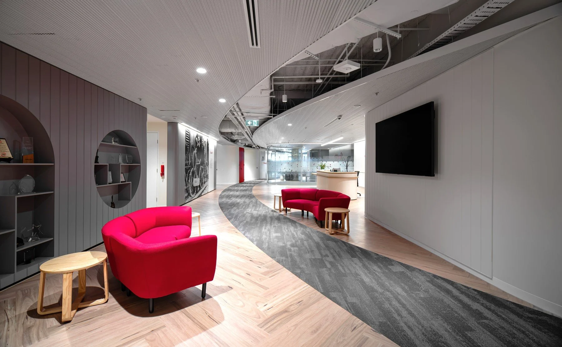 The Interface Carpet Tiles installed are manufactured in Australia and delivered locally from Sydney. Interface are dedicated to sustainability and have a recycling program for old carpet tiles, as well as a program which turns discarded fishing nets into carpet tiles. Interface Carpet tiles are also carbon neutral across their full product life cycle.